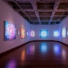 Работы, представленные на выставке, в основе своей характерны для такого сложившегося и узнаваемого мастера, как Александр Гущин: тут и герои вымышленные и настоящие, петербургские и итальянские пейзажи. Возможно впервые появляется музыкальная тематика - цикл работ, посвященный музыкальным инструментам. "Поздняя прогулка"- этикетка одной из картин выставки. Человек снял с вешалки пальто, отпер дверь и вышел на улицу. Дальнейшее развитие событий, при всей многовариантности может завести нас как на вечернюю,залитую огнями набережную, так и в Сад расходящихся тропок.