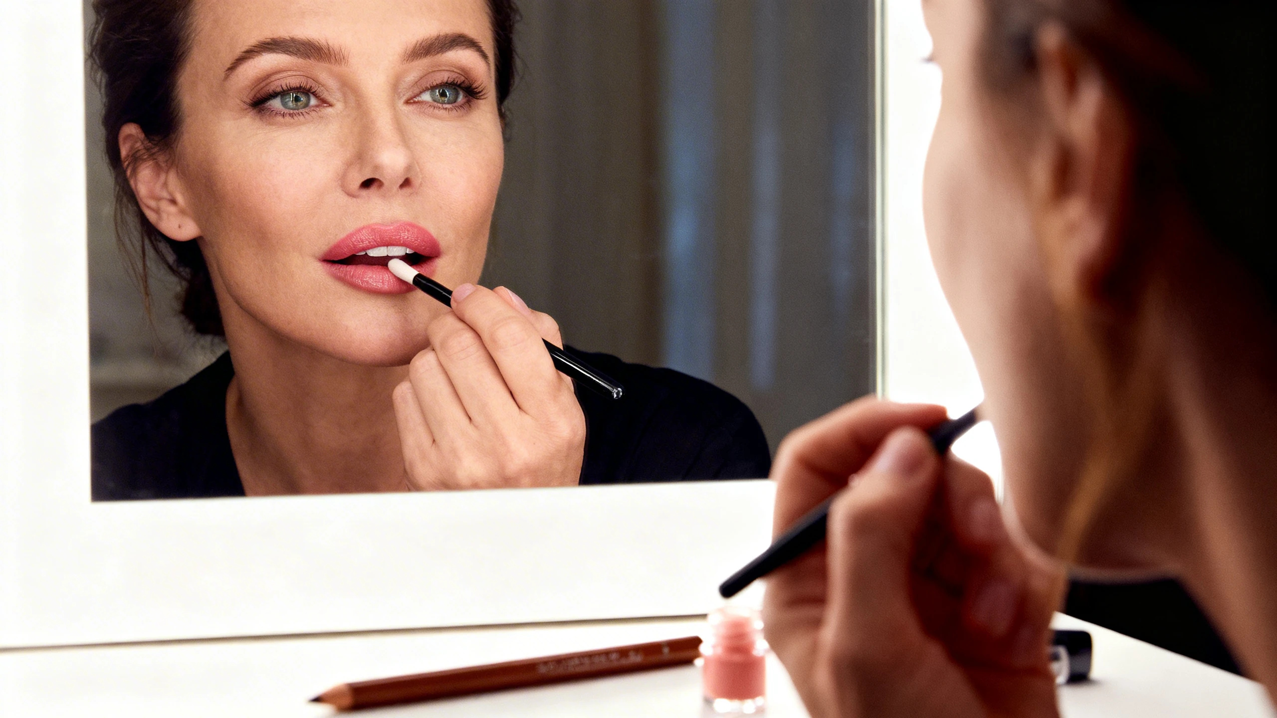 Контурный карандаш - ещё один незаменимый инструмент. Он помогает аккуратно оформить форму губ, не создавая жёстких линий. Лёгкая растушёвка кистью делает макияж естественным, а нанесение помады тонкими слоями обеспечивает равномерный цвет без эффекта маски.