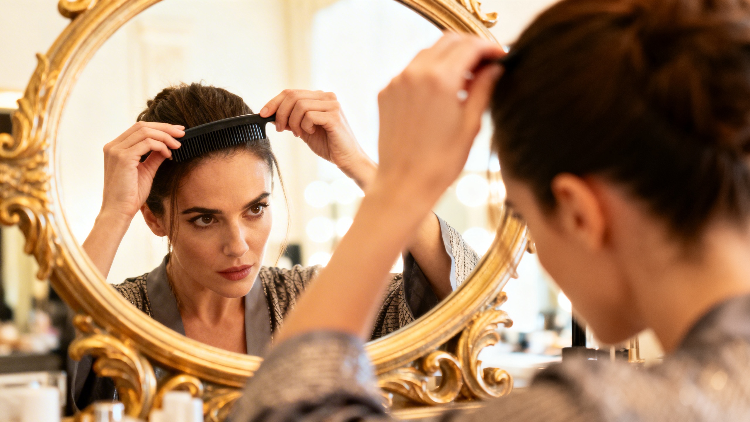 На фоне этого запроса на смену привычным аксессуарам приходит «французская расческа» - тонкая, изящная и почти незаметная в волосах. Хотя этот аксессуар известен уже больше века, именно сейчас он переживает настоящий ренессанс. Причина проста: женщины ищут способы подчеркнуть индивидуальность, не перегружая образ деталями. Французская расческа позволяет собрать волосы назад, создать чистую линию укладки и при этом избежать ощущения «перетянутости» или небрежности, которое часто дают кламмеры.
