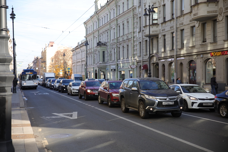К полудню пробки в Петербурге достигли девяти баллов