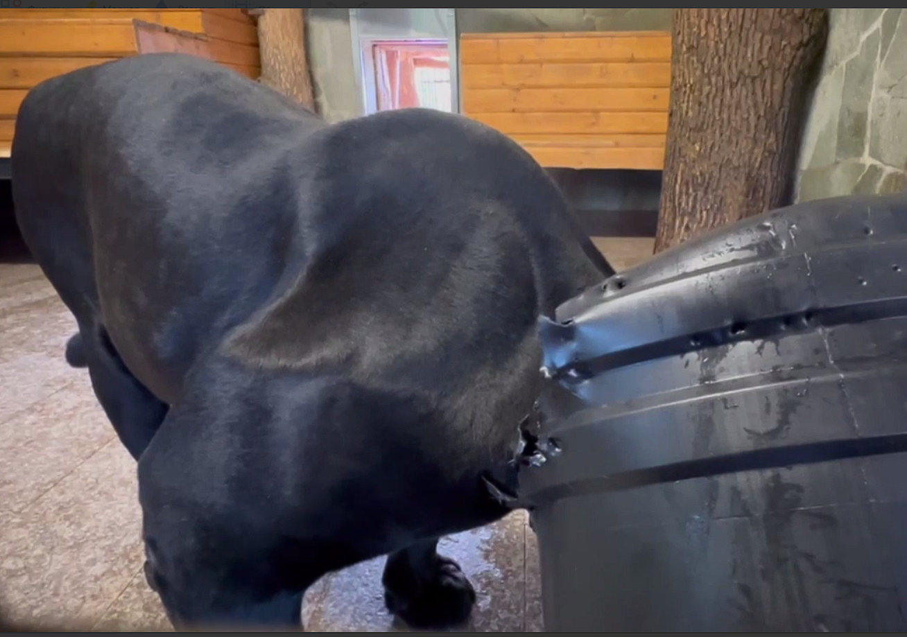 Чёрный как ночь ягуар Ричард, проживающий в Ленинградском зоопарке, очень сильной любовью любит различные банки, коробки и канистры. Впрочем, как и почти все кошки, совершенно независимо от их размеров.