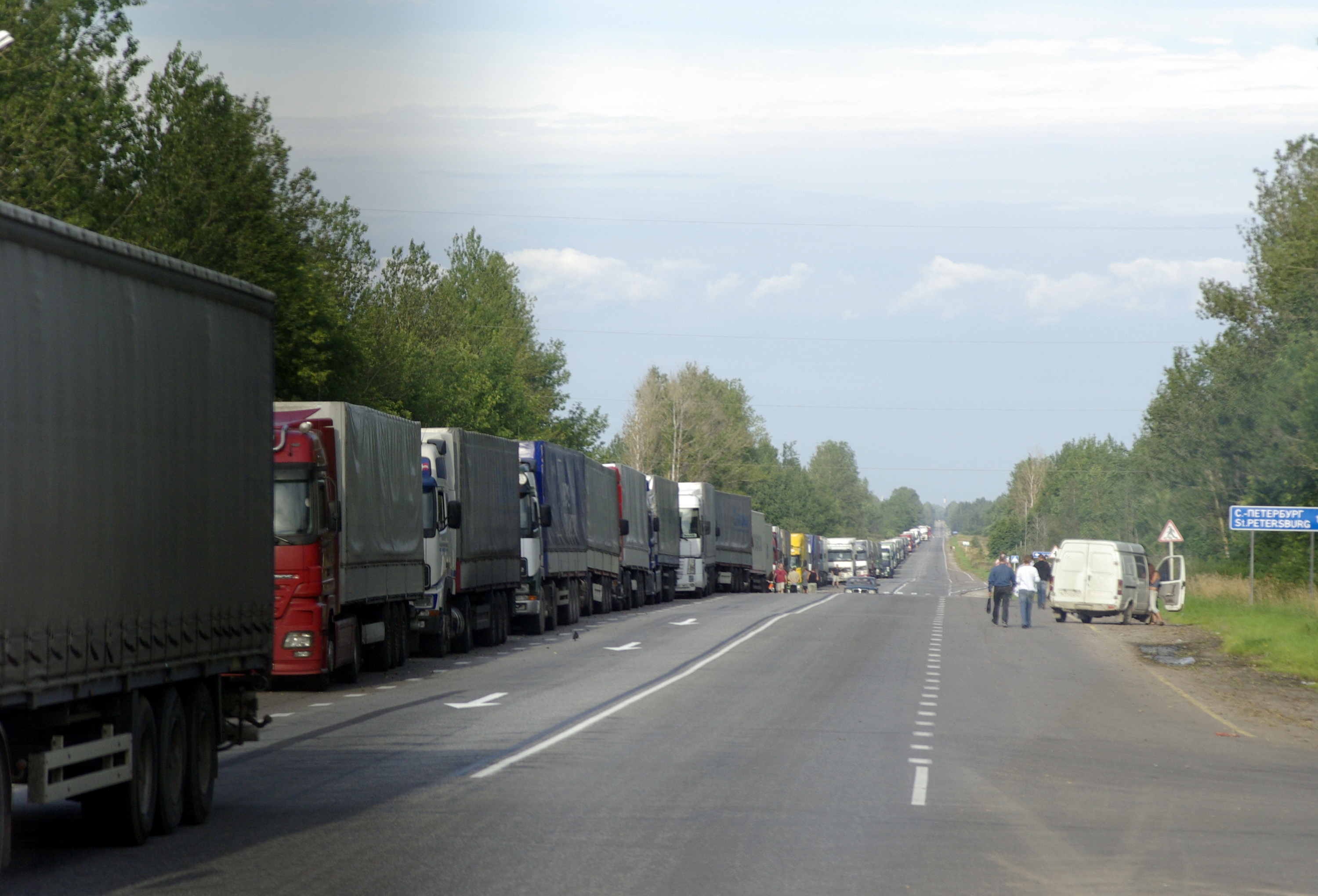 Две аварии с фурами и пожар парализовали движение на КАД Петербурга