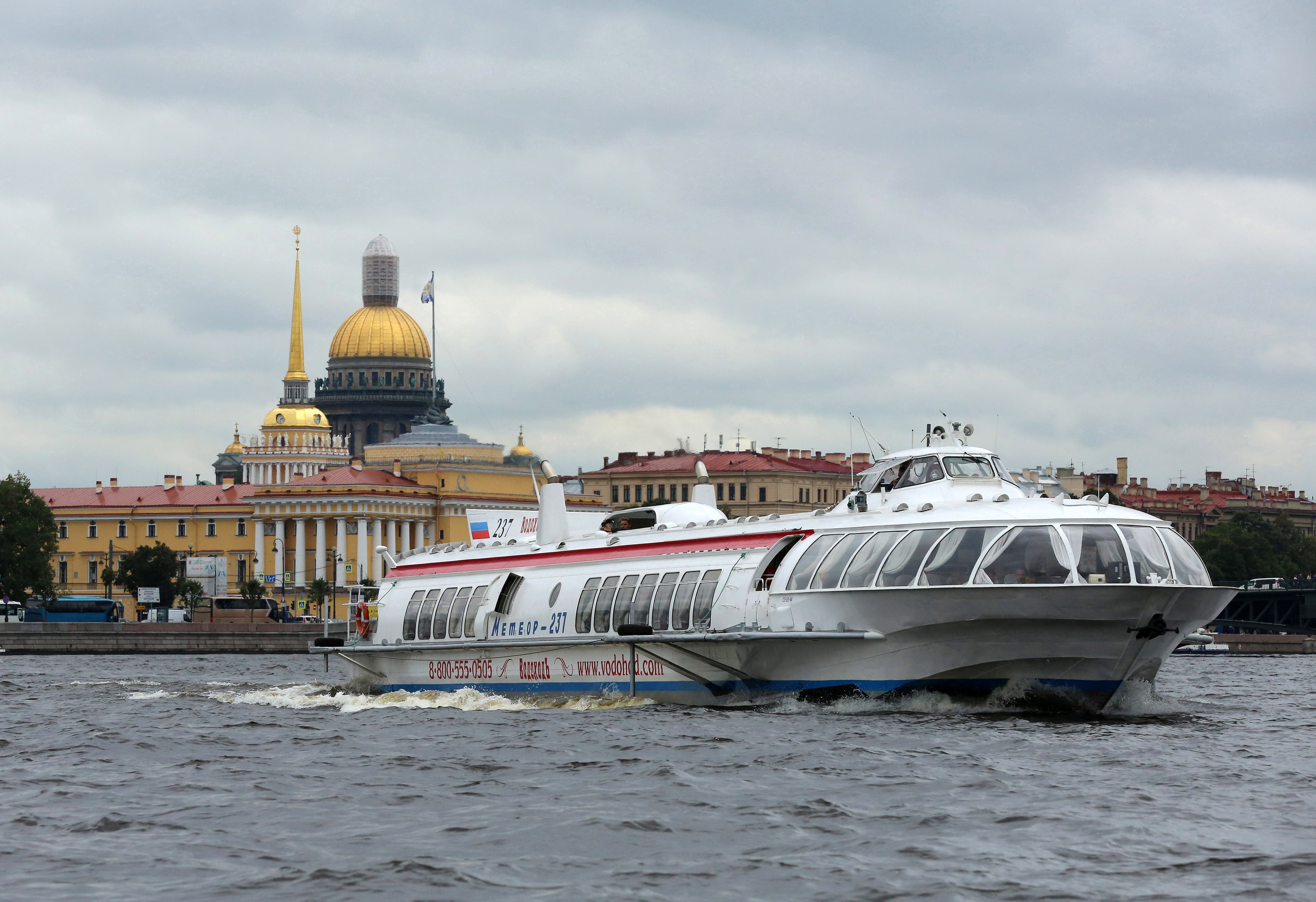 В Северной столице скоростные теплоходы по данному маршруту отходят от причала, расположенного на Адмиралтейской набережной, 10. Весь путь занимается примерно полтора часа.