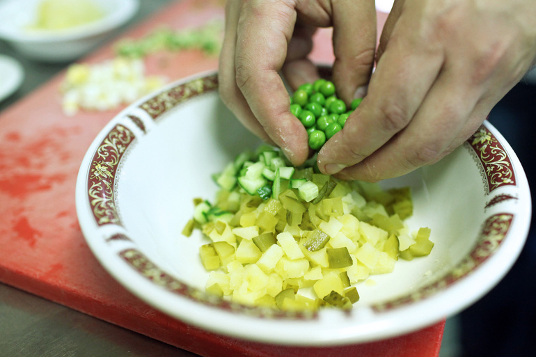Для начала Кузнецов предлагает салат, в котором сочетаются сладость тыквы, пикантность чечевицы сорта «белуга» и свежесть граната. Тыква нарезается крупными кубиками и запекается до мягкости, а чечевица отваривается до упругости. Заправка на основе тахини и лимонного сока придает блюду кремовую текстуру. Все ингредиенты смешиваются в миске и подаются теплыми, что особенно актуально для зимнего застолья.