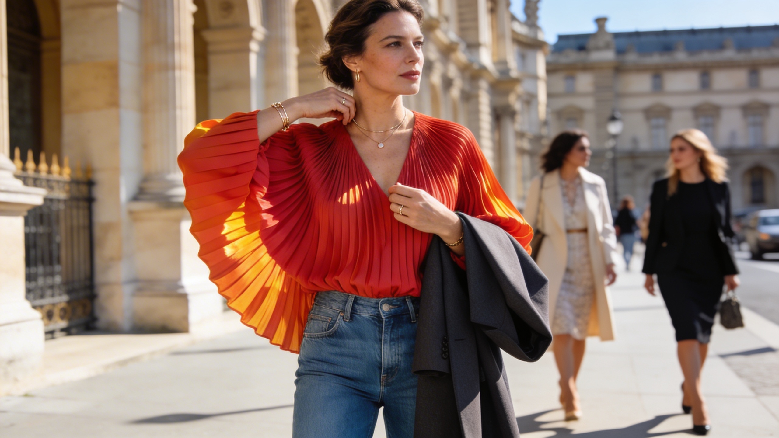 Плиссированные топы не только эффектны, но и практичны: ткань почти не мнется, что делает их идеальным выбором для поездок и активных будней. Этот факт особенно важен для женщин, которые ценят комфорт и не готовы жертвовать внешним видом ради удобства. Кстати, похожий сдвиг в сторону функциональности и простоты наблюдается и в выборе аксессуаров: новые сумочные тренды из Бруклина также подчеркивают индивидуальность без лишних деталей.