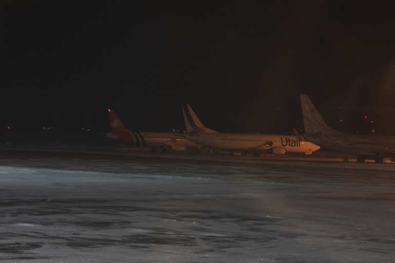 Аэропорт оказался парализован, а пассажиры ждут решения в условиях непогоды