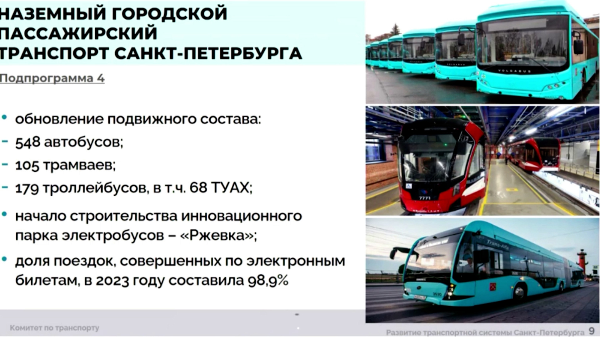В Петербурге продолжат обновлять подвижный состав. В 2024 году планируется поставка 41 троллейбуса, 136 трамваев, 10 составов "Балтиец" для метро и 620 автобусов и электробусов для "Пассажиравтотранса".