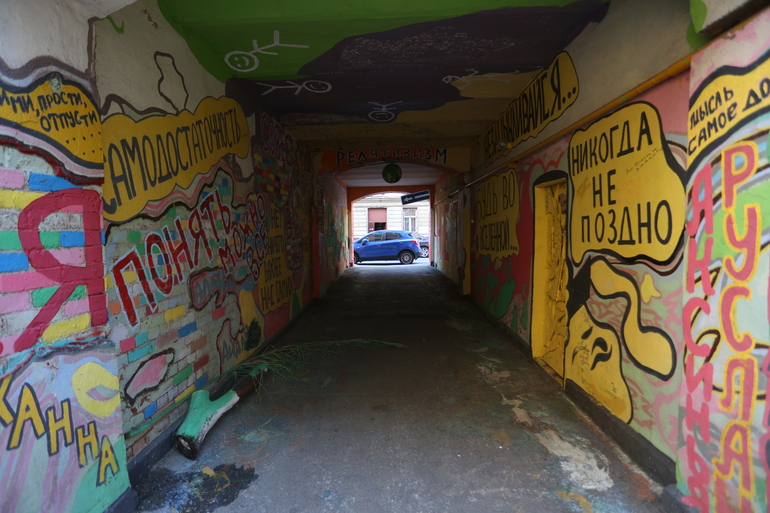 Стрит-арт на Каменноостровском исчез после обращения жителя: арку закрасили раньше срока