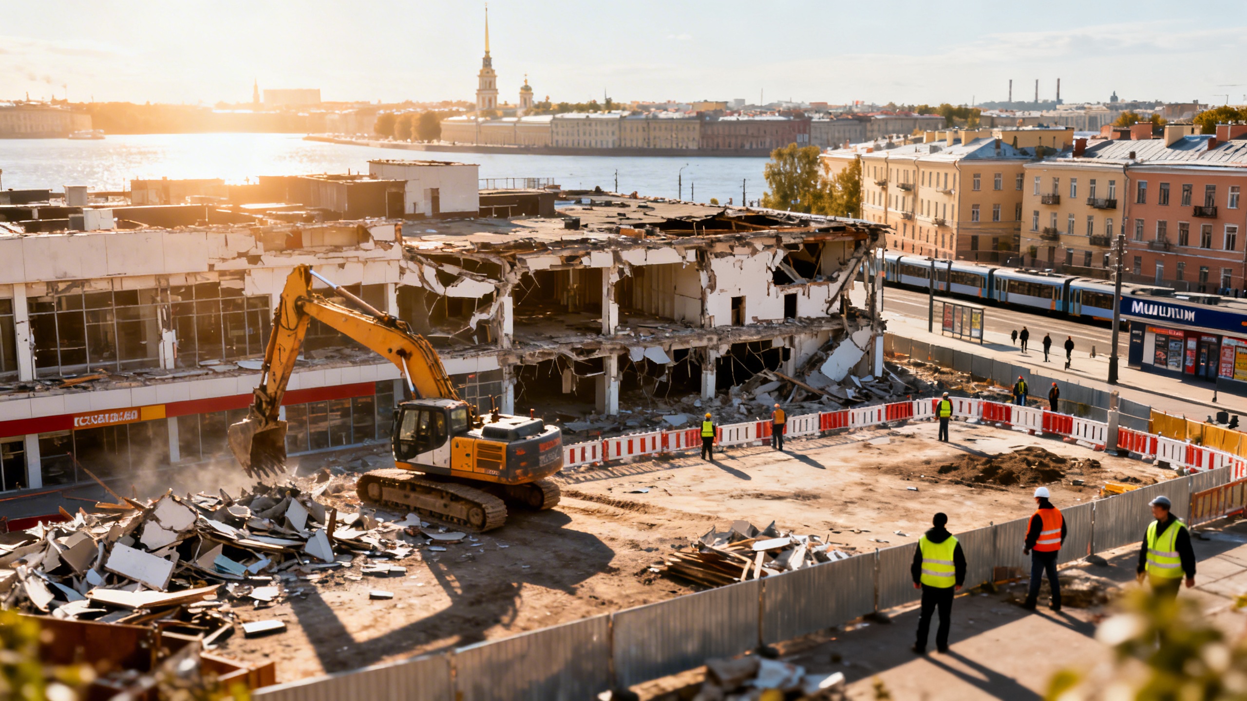 В районе станции метро «Приморская» завершается демонтаж торгового центра, который долгое время оставался частично снесенным и вызывал вопросы у местных жителей. Теперь работы по разбору объекта должны быть полностью завершены к 20 апреля, а за состояние строительного ограждения отвечает новая компания - ЗАО «Союз-Инвест». Это решение принято после того, как прежний арендатор не смог самостоятельно довести процесс до конца из-за судебных разбирательств, которые затянулись с прошлого лета.