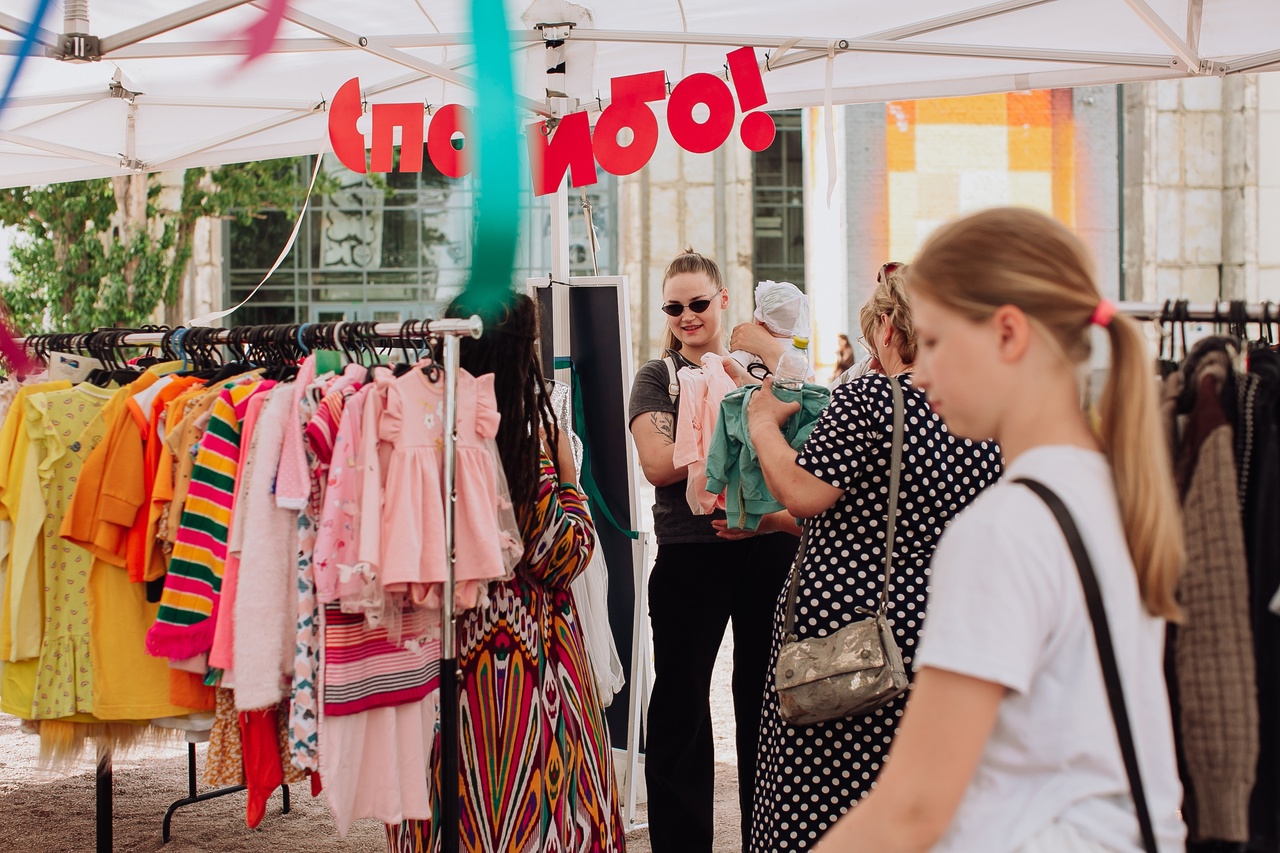 Также весь день рядом с шерингом работал благотворительный магазин с детскими вещами на возраст от 0 до 10 лет. Многие из них сдают в «Спасибо!» в отличном состоянии и даже с бирками. Вся выручка с продажи такой одежды была направлена в фонд «Свет.дети», который занимается помощью детям с онкологическими заболеваниями.