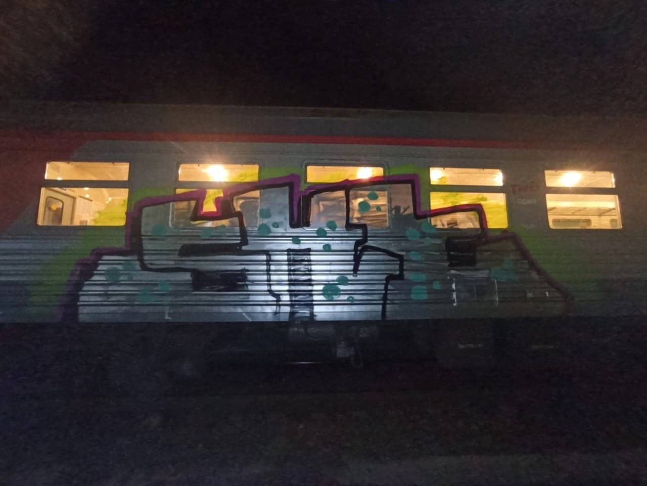 Инцидент произошел на станции 45 километров. Прапорщик полиции заметил двоих молодых людей в балаклавах, расписывающих состав.