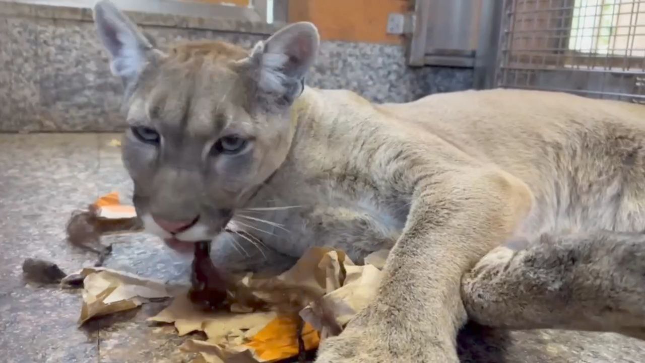 В Лензоопарке показали, как пума Синди расправилась с подарком