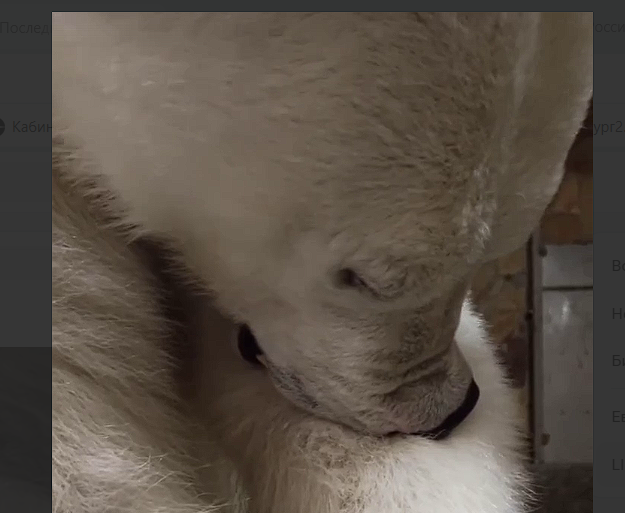 Красавица белая медведица Хаарчана старательно прихорашивается каждое утро. Как почти любая девушка она тщательно следит за своей красотой – очень тщательно ухаживает за шерстью, уделяя особое внимание лапам.