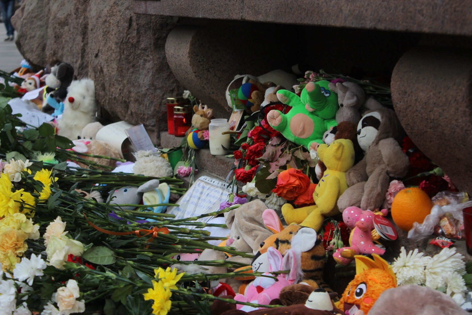 Стихийные мемориалы возникли в разных районах Петербурга
