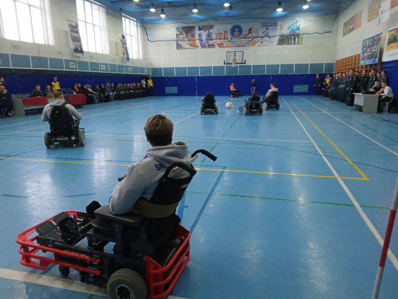 На поле университета МЧС России в Петербурге состоялся футбольный турнир на электроколясках. За первенство боролись команды "Паралимпик" и "Невские звезды".