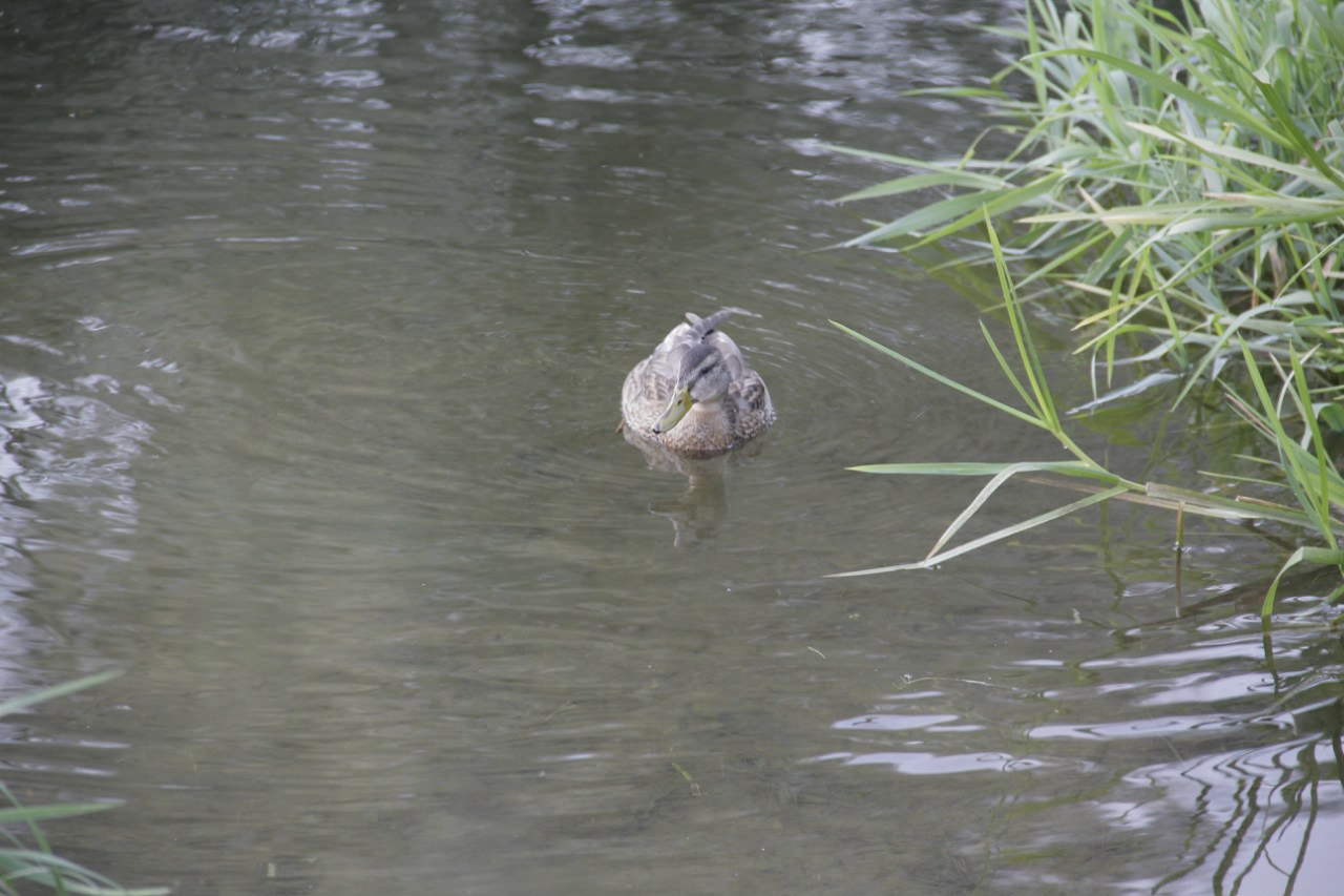 В одном из прудов в Петроградском районе города местные жители заметили утку с двумя птенцами.