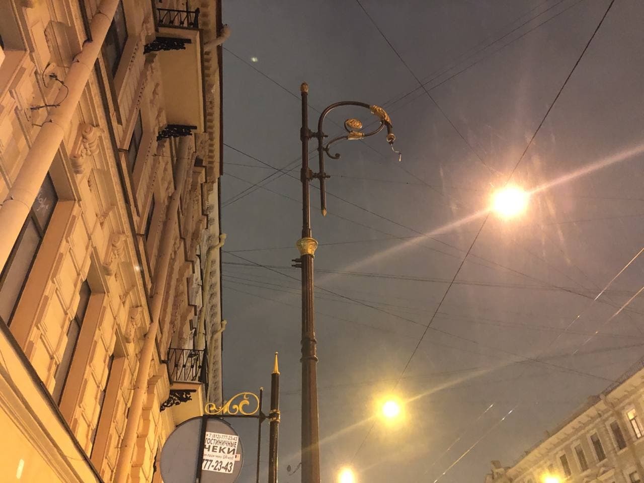 В Приморском районе после аварии фонарь оказался на проводах над дорогой