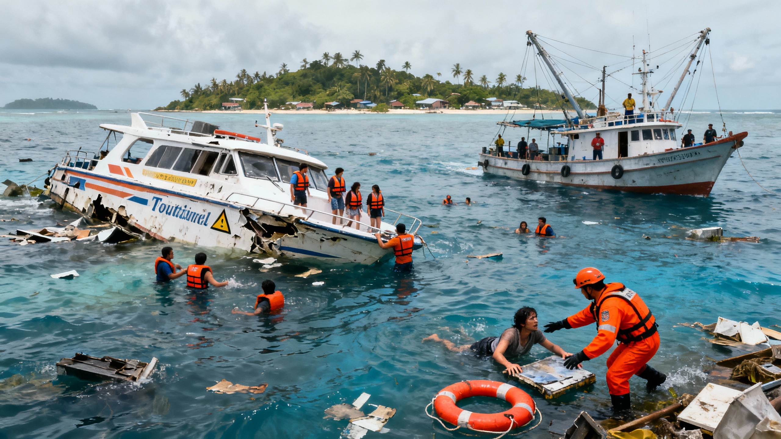 На популярном острове произошел инцидент с туристическим судном. Власти проводят расследование. Пострадавшие доставлены в больницы. Спасатели продолжают работу на месте происшествия.