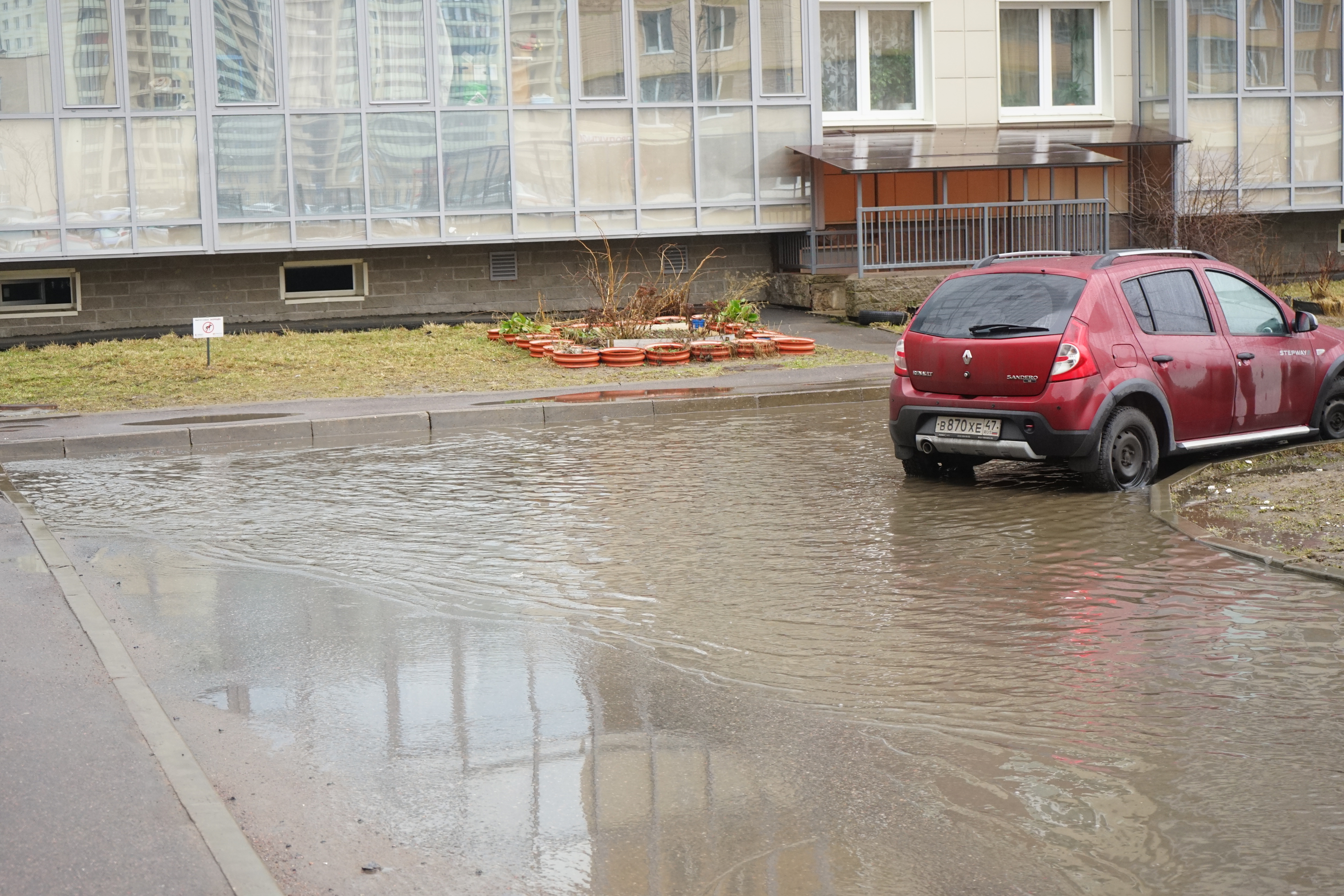 Неожиданный потоп в Рыбацком: автомобили в воде, а жильцы в шоке