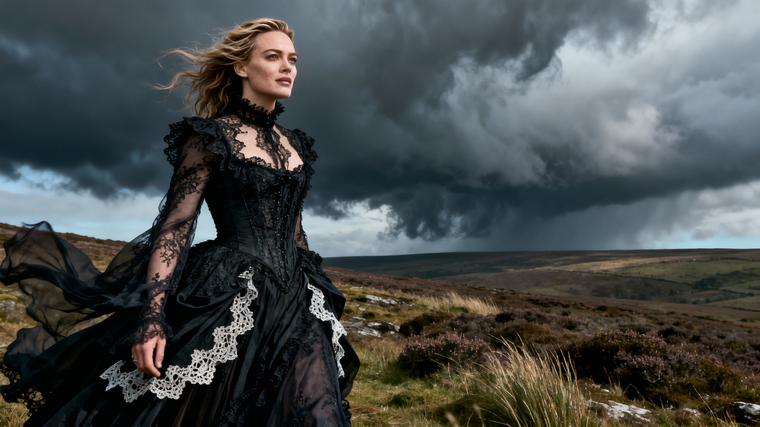 Марго Робби давно славится умением подбирать образы, идеально соответствующие тематике ее проектов. После череды культовых «кукольных» выходов в стиле Barbie летом 2023 года, актриса сменила вектор и выбрала романтику с налетом мрачной готики. Ее волосы, обычно гладкие и короткие, теперь уложены в свободные, объемные волны, которые будто бы только что растрепал северный ветер. Такой образ идеально вписался бы в атмосферу романа Эмили Бронте, и неудивительно, что он моментально стал предметом обсуждения среди поклонников и экспертов индустрии.